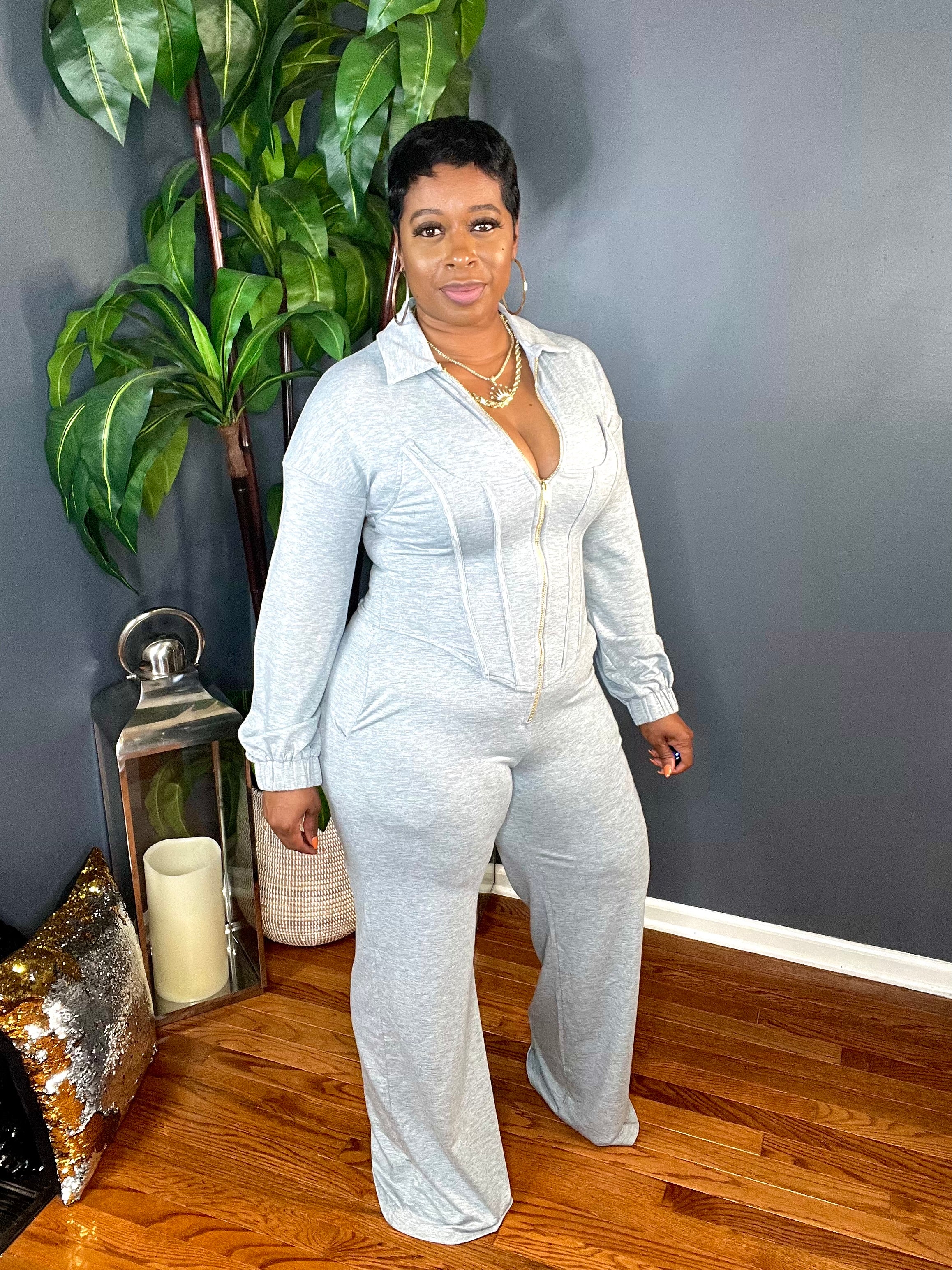 The Sasha Corset Jumpsuit (Heather Grey)