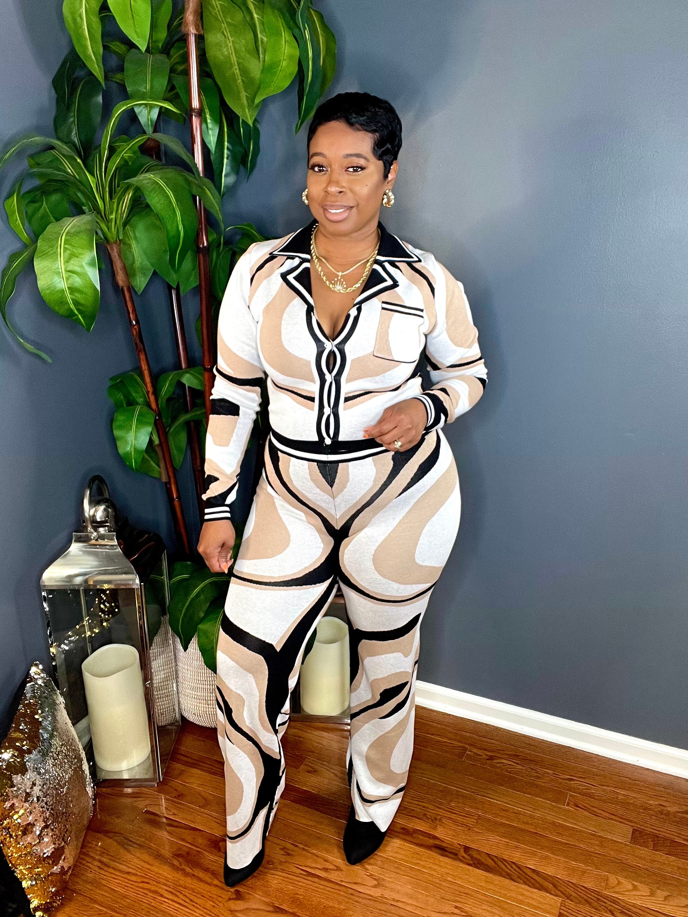 The Zara Luxe 2pc Sweater Set (Khaki/White/Black)