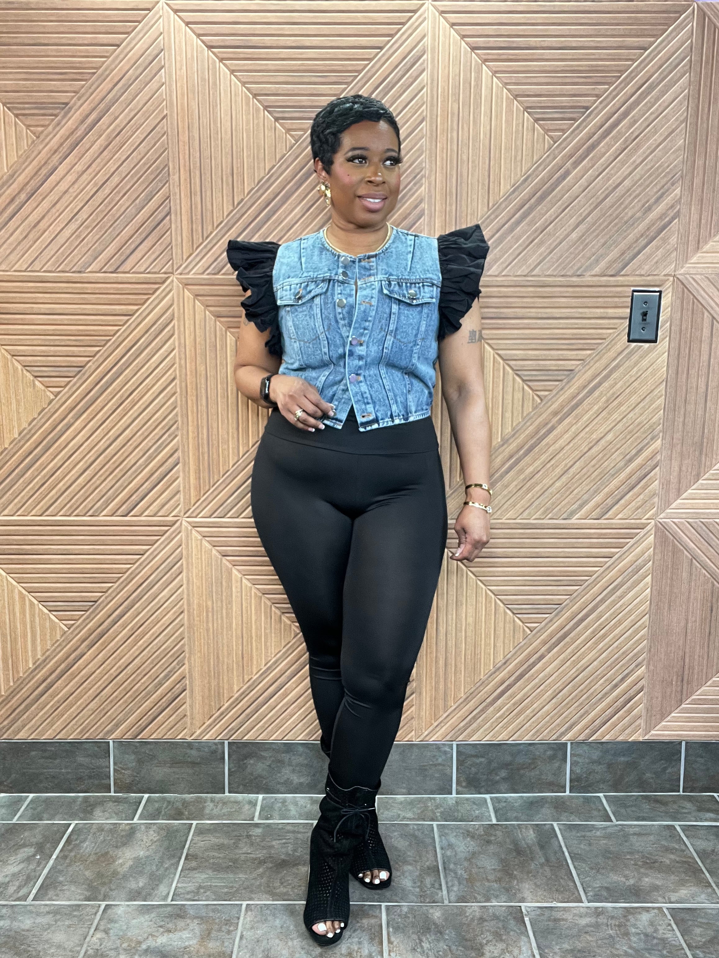 - Ruffle denim vest